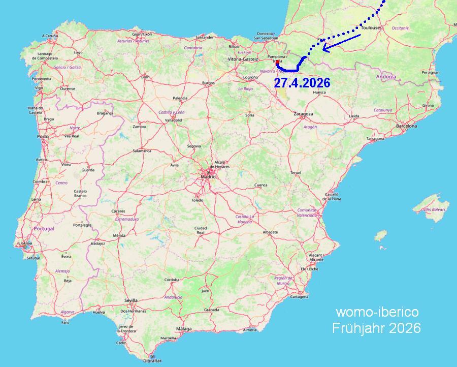 Nachdem aus verschiedenen Gründen weder im vergangenen Herbst noch im Winter eine längere Reise möglich war, haben Christa und ich nun wieder eine Reise begonnen, die uns vor allem durch die schon lange nicht mehr besuchten Gebiete in Nord-Spanien führen soll.
