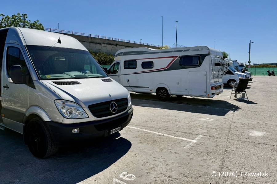 | Der Stellplatz ist seit März 2024 in Betrieb. Er bietet Platz für 50 Wohnmobile, allerdings sind die Parzellen mit einer Breite von 4m eher schmal. Es handelt sich nach Aussage des Betreibers auch nicht um einen Urlaubsplatz, sondern um einen Platz für die Durchreise oder für Stadtbesuche. Der Preis (2026) ist Großstadt-typisch: 20 € pro Tag. Elektrischer Strom (16A) ist inklusive. |