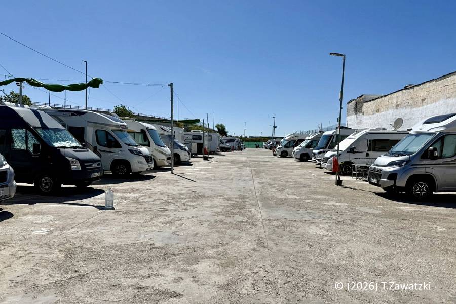 | Besucher-Kommentar (3.4.2026): Schmuckloser, aber zweckmässiger Stellplatz in einem Gewerbegebiet. Plätze eben, nicht übermäßig groß. Strom, Duschen, WC, Waschmaschine und Trockner und WiFi vorhanden. Stühle aufstellen erlaubt. Sehr freundliches Betreiberpaar! Flughafennähe, tagsüber etwas Lärm durch startende Flugzeuge. Buslinie 160 ins Zentrum, Entfernung 400 m. Preis 20 €, auch über Ostern, sehr fair! Platz ist gerade "completo". |