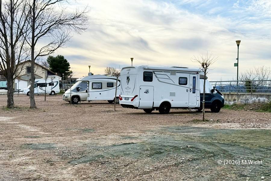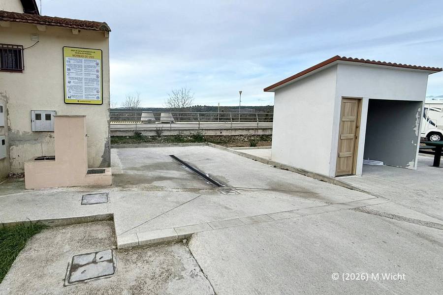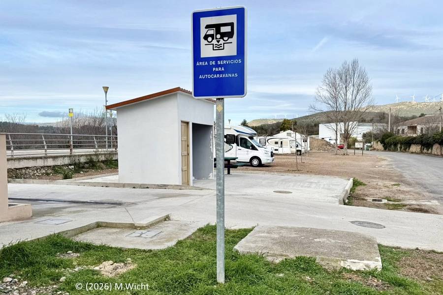 | Der Stellplatz ist seit Juni 2024 in Betrieb. Er liegt zwar direkt neben den Gleisen der Eisenbahn, nachts fahren aber wohl keine Züge. Es gibt Strom-Anschlüsse, für deren Nutzung man Jetons benötigt, die man in örtlichen Geschäften kaufen kann (3€/12h Strom). Hinweis Nur wenige hundert Meter entfernt verläuft die Vía Verde de Ojos Negros. |