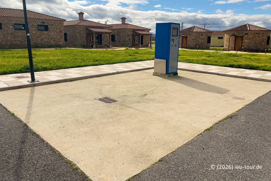 | Offizieller Stellplatz an den Ausläufern des Stausees Embalse de Arrocampo, etwa 500m vom Ortszentrum entfernt. |