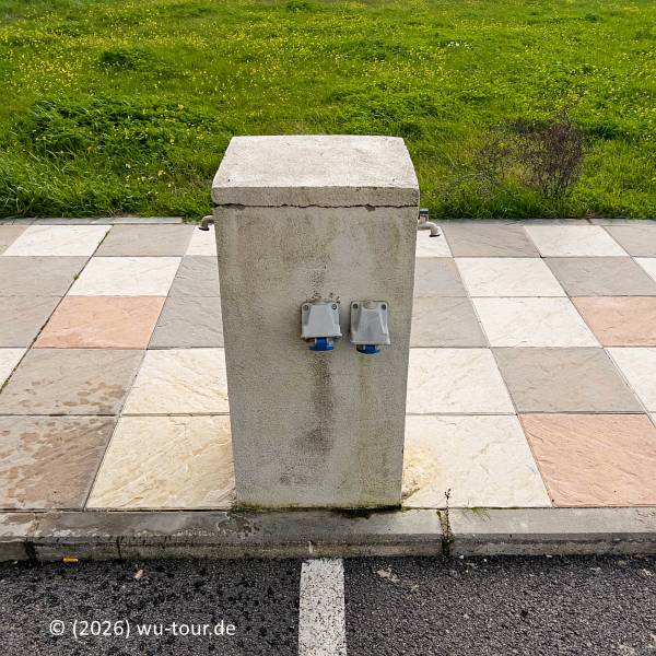 | Eigentlich ist dies ein "echter" Stellplatz mit Ver- und Entsorgung, aber die Inbetriebnahme der Servicestation verzögert sich offenbar. Die Nutzung als Parkplatz ist aber möglich. Der asphaltierte Parkplatz mit vier für Wohnmobile markierte Parkbuchten liegt bei einem Naturschutz-Gebiet mit Spazierwegen und Stationen zur Vogelbeobachtung. |