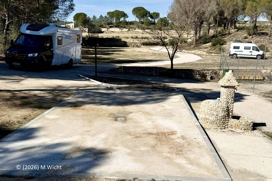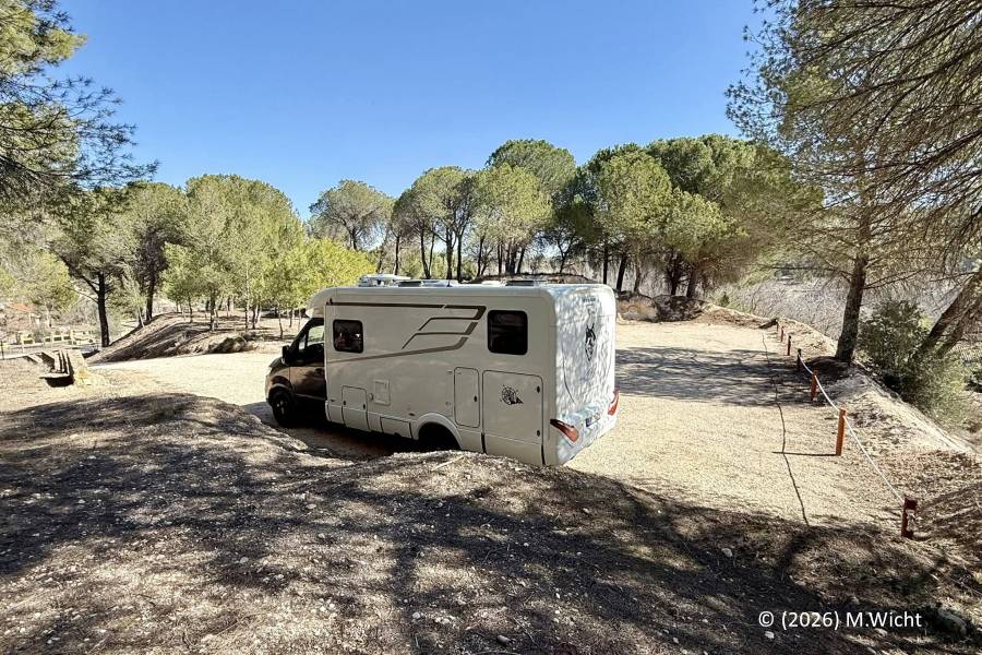 | Offizieller Stellplatz bei einem Picknick-Bereich im Tal des Río Júcar, etwa 1.3 km vom Ortszentrum entfernt. Maximal 72 Stunden Aufenthalt sind erlaubt. |