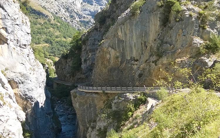 Die Schlucht des Flusses Río Cares trennt das zentrale Massiv der Picos de Europa von dem westlichen Teil der Picos. Vom Bergdorf Caín in der Provinz León bis zum Endpunkt des Tals im Ort Poncebos in Asturien sind 12 km zurückzulegen, hin und zurück also 24 km.
