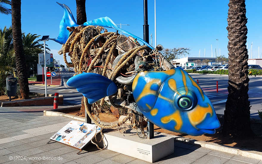 Wir spazieren am Meer entlang und über den Paseo Marítimo zu den verschiedenen Hafenbereichen und entdecken immer etwas Neues. Diesmal eine Skulptur, die aus Müll geformt wurde, der bei einer groß angelegten Aktion aus dem Meer gefischt wurde.