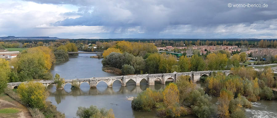 Und wenn man den Spazierweg so wählt, dass man über die westliche Duero-Brücke (Puente de los Poetas) geht, findet man ein typisches Ansichtskarten-Motiv von Zamora.