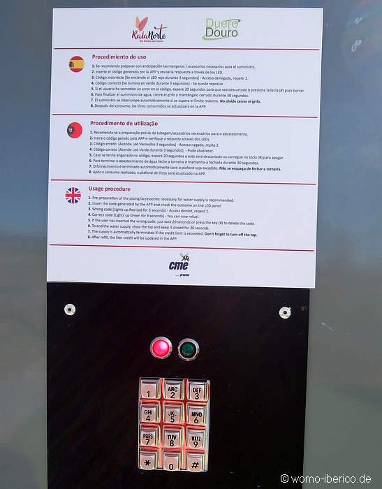 Auf diesem Stellplatz sehe ich zum ersten Mal die mit einem vorher zu kaufenden Code gesteuerte Wasserversorgung, die bei einigen Stellplätzen des Raia-Norte-Projekts realisiert wurde.