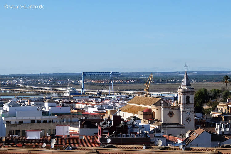 Geblieben ist aber die Aussicht über die Stadt Huelva, nachdem man die schier unendlichen Treppen hinauf geklettert ist. Der Blick nach Westen geht bis zu den Brücken über die Marismas am Río Odiel.