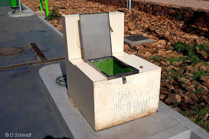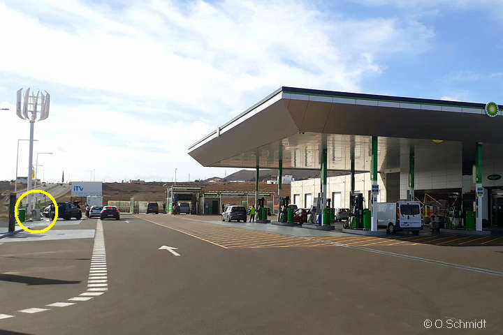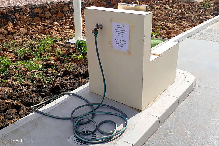 Ver- und Entsorgung für Wohnmobile bei einer Repsol-Tankstelle am Ortsrand von Corralejo. |