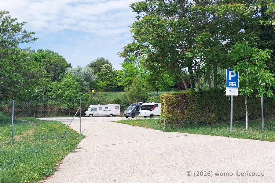 | Offizieller Park- und Übernachtungsplatz etwas außerhalb der Ortschaft neben dem Freibad auf einem ehemaligen Sportplatz mit Beton-Untergrund, etwa 500m vom Zentrum entfernt. |