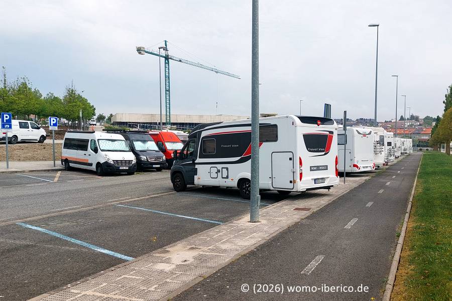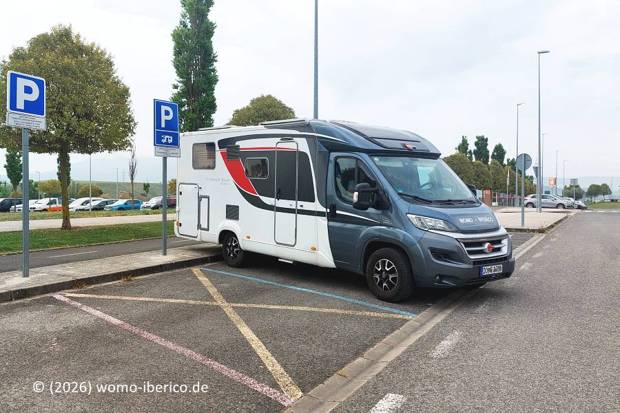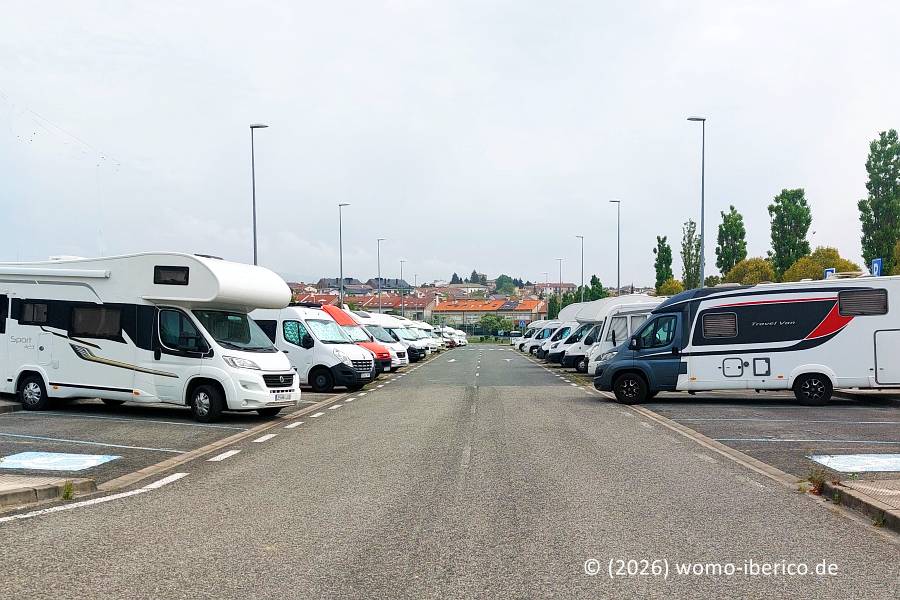 | Fast die gesamte Straße Calle Arrobia (ca. 200m) ist Wohnmobil-Parkplatz. Allerdings sind nur 6 Parkbuchten für Wohnmobil-Reisende vorgesehen (blau markiert), die restlichen etwa 100 Plätze (rot markiert) sind für Einwohner mit entsprechender Genehmigung reserviert. Da die Parkbuchten markiert sind, ist die Länge der Fahrzeuge beschränkt. Mein 7m-Wohnmobil passte nur ganz knapp auf die vorgesehene Fläche. Auf keinen Fall sollte man z.B. mit dem Heck den Radweg blockieren. Alle Parkbuchten haben Gefälle - eine waagerechte Ausrichtung wäre nur mit Unterlegkeilen möglich, die hier aber wohl nicht gern gesehen werden. Insgesamt also eher nur ein Not-Parkplatz... Hinweis Seit April 2021 gilt eine Ordenanza Municipal (OM), die das Wohnmobil-Parken im Stadtgebiet regelt. Neben den zeitlich befristeten Parkplätzen (72h), die von allen Wohnmobilisten genutzt werden können, gibt es weitere Wohnmobil-Plätze, die aber nur von Bürgern der Stadt als Abstellplatz ohne Zeitlimit genutzt werden dürfen. Unbedingt auf die Beschilderung achten! Im übrigen erlaubt die OM auch das Parken bis zu 72 Stunden auf allen sonstigen Parkplätzen im Stadtgebiet, solange man in die markierten Parkbuchten passt und auch sonst den Verkehrsregeln genügt (z.B. keine Sichtbehinderung). |