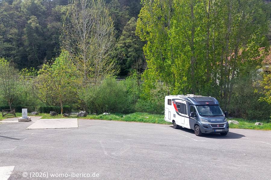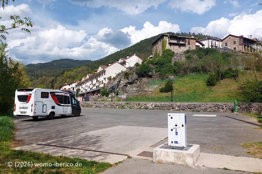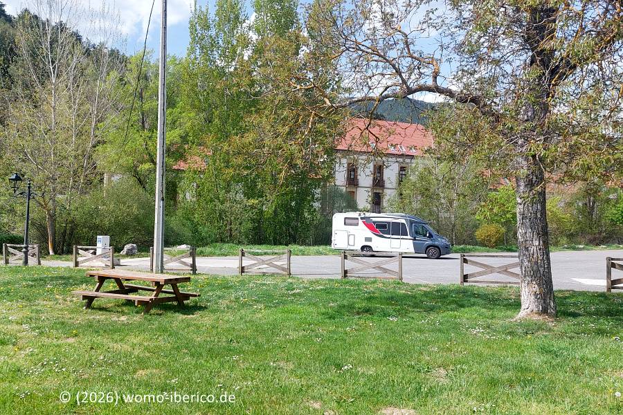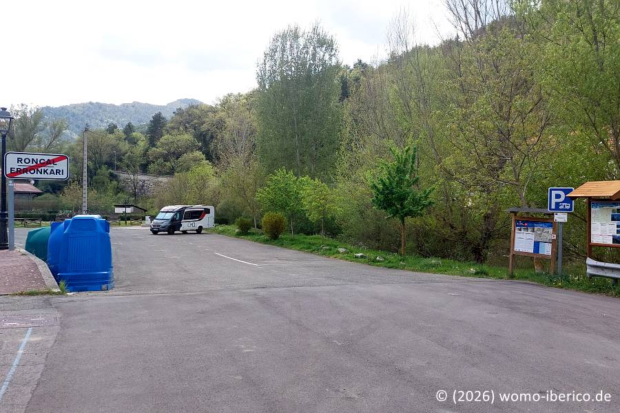 | Der schon früher als Übernachtungsplatz genutzte Asphalt-Parkplatz wurde 2023 mit einer Ver- und Entsorgungsstation (Euro-Relais Mini) zu einem echten Wohnmobil-Stellplatz ausgebaut. Es sind neun Parkbuchten markiert, die aber nur noch schlecht zu erkennen sind. Die Ver- und Entsorgung war bei meinem Besuch in Ordnung, alles funktionierte. Nachts war es ruhig (bis auf das Murmeln des Río Esca). Der Ort Roncal gehört zu den "schönsten Dörfern Spaniens" (Los Pueblos más bonitos de España). Zumindest einige Ecken in dem engen Ortskern sind ganz hübsch. Wanderwege in der Umgebung, kleine Geschäfte und Bars/Restaurants machen den Aufenthalt ganz angenehm. In diesem YouTube-Video (spanisch) wird der Stellplatz und die Umgebung vorgestellt. |