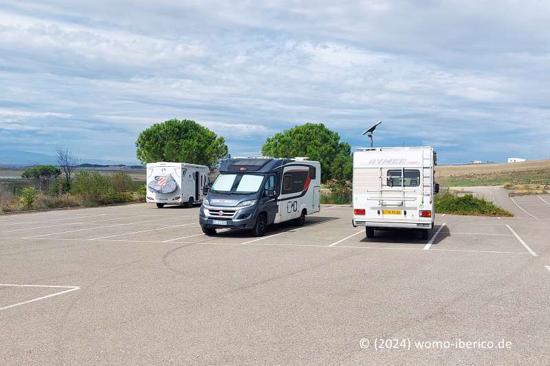 | Auf dem Asphalt-Parkplatz sind einige besonders große Plätze markiert, allerdings gibt es keine entsprechende Beschilderung. Alle Plätze haben sehr starkes Gefälle. Der Platz liegt auf einem Hügel am Rand des Naturparks "Bardenas Reales". Es gibt von hier aus auch Wanderwege in den Naturpark. Knapp 2 km entfernt befindet sich der Freizeitpark "Senda Viva", den man ebenfalls zu Fuß erreichen kann. |