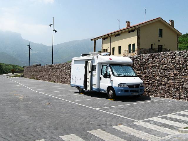 Die Herberge ist geschlossen, der Parkplatz kann offenbar auch nicht genutzt werden Ein guter Stellplatz in schöner Umgebung auf 650m Höhe, etwa nach einem Drittel des Weges zum Gipfel des Angliru. Leider war bei meinem Besuch das Wetter unfreundlich - die Wolken hingen genau auf Höhe des Stellplatzes, so dass ich mich schon nach einer Übernachtung wieder verabschiedete. |