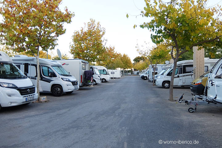 | Dieser Stellplatz bietet zwar die komplette übliche Ausstattung, und sogar ein großes Schwimmbad im Sommer, aber wenn man Trinkwasser in den Tank füllen will, muss man extra bezahlen (0.50 € für etwa 40 Liter). Kostenlos gibt es nur Brunnenwasser (Agua de Pozo). Die Parzellen sind in drei Gruppen eingeteilt: im Innenbereich nah an der Rezeption und am Sanitär-Gebäude sind die Plätze mit Strom-Anschluss (4A oder 6A), außerhalb des zentralen Bereichs sind die Plätze ohne Strom-Anschluss. Die Ver- und Entsorgung ist ein Engpass, weil man an der selben Stelle rein und raus fahren muss, eine Warteschlange behindert alles. Das WiFi-Netz ist offenbar auf dem ganzen Platz vorhanden und ausreichend schnell. Der Preis pro Tag ist mit 13 € auf den Plätzen ohne Strom vergleichsweise niedrig bei der Nähe zu einer Großstadt, Plätze mit Strom kosten 16 € (4A) bzw. 18 € (6A) pro Tag (Preise von 2022). |