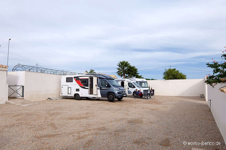 | Privater Stellplatz auf dem Gelände der Finca La Mimosa in einer Urbanisation etwa in der Mitte zwischen Murcia und dem Meer. |