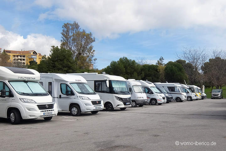 | Offizieller Stellplatz auf einem Teil des Recinto Ferial (Mehrzweckplatz) im Ortsteil Arroyo de la Miel, gegenüber vom Freizeitpark "Selwo Marina", etwa 500m vom Meer entfernt. Die maximal erlaubte Aufenthaltsdauer beträgt 72 Stunden. |