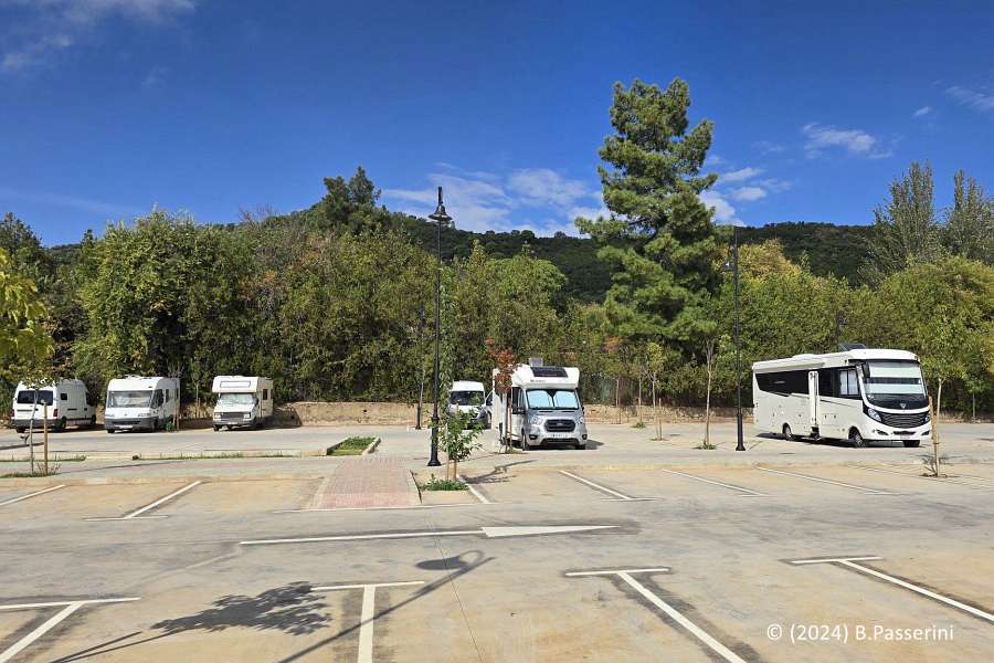 | Für Wohnmobile reservierter Teil auf einem allgemeinen öffentlichen Parkplatz in zentraler Lage neben dem Recinto Ferial. |