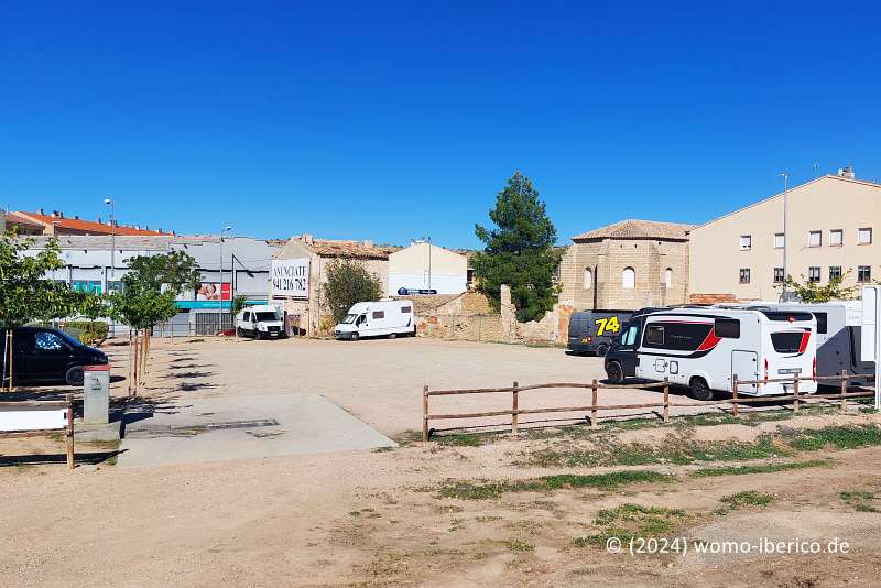 | Der Untergrund ist ein verdichtetes Erde/Schottergemisch, das nach Regen etwas schmierig wird, und richtig eben ist der Platz auch nicht. Auf einer Seite des Platzes sind einige Bäumchen angepflanzt, die das Ambiente etwas hübscher machen. Richtigen Schatten werfen sie noch nicht, und große Wohnmobile passen auch kaum dazwischen, aber es gibt ja genug kleine Wohnmobile. Die Ver- und Entsorgungsstation vom Typ Camper-WcWash funktioniert gut, zwar sind die Wasserhähne (mit Gewinde) inzwischen etwas wackelig, aber noch tun sie ihren Dienst. Die vorbeiführende Hauptstraße erzeugt tagsüber etwas Verkehrslärm, nachts ist es weitgehend ruhig. Das historische Zentrum mit ein paar hübschen alten Bauwerken ist gut zu Fuß zu erreichen. Dort gibt es auch viele Bars/Restaurants und in der Nähe findet man mehrere Supermärkte. |